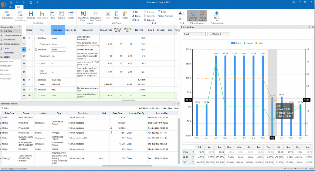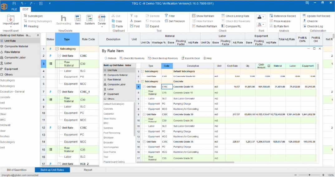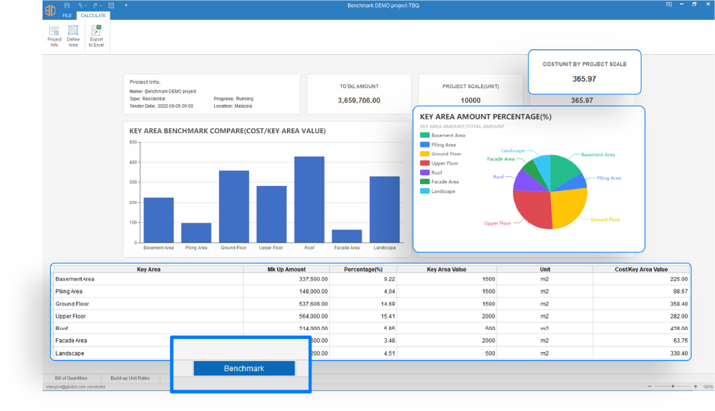 Easy to check, review and update costing precisely with linked buildup rates and real-time cost analysis in each project.